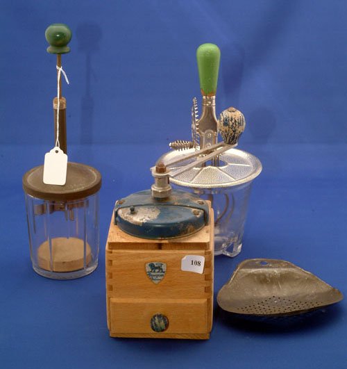 FOUR KITCHEN COLLECTIBLES, INCLUDES COFFEE GRINDER