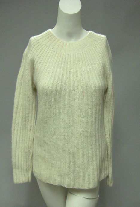 SoldLARGE GROUP OF LADIES' CLOTHING AND MISCELLANEOUSVarious, 20th century. Large closet full of ladies' clothing including numerous sweaters, suits, skirts and jackets. Ivory satin wedding dress (c. 1980s) and veil. Two pair of men's wool slacks. AlsoSee Sold Price