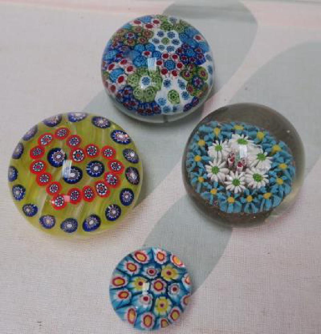 Four Millifore Art Glass Paperweights:
