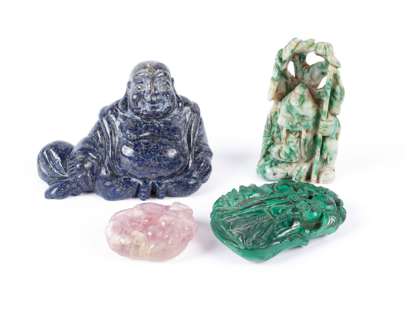 Bronze, Terracotta & Resin Buddha & Other 4pc LOT3 days Left(6) pc ASIAN FIGURAL & SNUFF BOTTLE LOT2 days LeftFive Chinese Hardstone Qing Emperor Figure Seals5 days LeftA Group of Three Jade and Other Carvings, 18th cMar 12, 2026Four Chinese Carved Jade Archaistic FiguresMar 12, 2026Chinese Hardstone Statues5 days LeftChinese Carved Jade and Coral Sculptures, 4May 07, 2026Chinese Green Hardstone Carvings5 days LeftLots Chinese fine carvingsMar 05, 2026Chinese Pink Rock Crystal Sculptures, 7Mar 19, 2026(6) Chinese Carved Jade and Hardstone Pendants.Mar 08, 2026Chinese Amethyst & Lapis Lazuli Carvings4 days LeftFive Carved Jadeite Pendants, Buddha & Guanyin5 days LeftGroup of 4 Jade/ Hard Stone Carvings5 days LeftGroup of Five Carved Miniature Figural Netsuke Style PiecesMar 05, 2026A Set of Exquisite Lapis Lazuli Inlaid White Jade Buddha Statue Ornaments5 days Left
