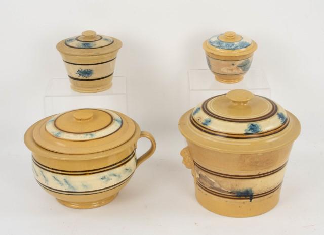 Four Mochaware Covered Crocks or Jars