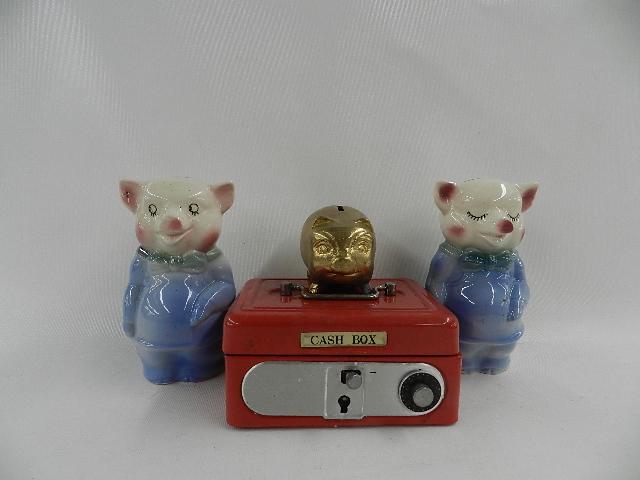 LOT OF AMERICAN CARTOON COVERED CERAMIC COOKIE JARSMar 08, 2026Bronze & Metal Works, Banthrico Financial Inst. Advertising Coin Banks Lot of 6Mar 16, 2026AMERICAN CARTOON CERAMIC COVERED COOKIE JARSMar 08, 2026(4) Gas Station Attendant Piggy BanksMar 14, 2026CHINESE BRONZE INCENSE BURNER & 4 FOO DOGS5 days LeftCast Iron Coin Banks, Pigs & Monkey (3)6 days Left(3) Thrift Dial Safe BanksMar 01, 2026(3) Cast iron & tin combination banksMar 28, 2026JAPAN BATTERY OP FISHING BEARS BANKMar 14, 2026(3) Cast Iron Coin Deposit BankMar 01, 20264-Ceramic Pig BanksMar 01, 2026(9) Modern Miniature Safe BanksMar 01, 2026A Group of Cast Iron Mechanical Bank Reproductions including Stump Speaker and Trick Pony Designs6 days LeftSix Cast Iron Bank Stills17 hrs LeftGroup of Vintage Tindeco Christmas Tin Candy BasketsMar 07, 2026Louis F. Dow Co. & Red Ball Safe Still BanksMar 01, 2026