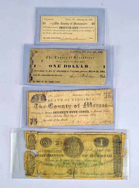 Lot Of Four 1963 Mixed Civil War TokensFeb 27, 2026OBSOLETE BANK NOTE 1800S LOT OF 33 days LeftLot Of Four 1863 Mixed Civil War TokensFeb 27, 20261863 - 1860 Confederate SA $5 & $10 Notes, 22 days LeftUS 1976 $2 Federal Reserve Notes, Paper, Friedberg-1935AMERICAN PAPER MONEY MILITARY PAYMENT CERTIFICATES4 days Left1860s Obsolete Confederacy US Currency, 15c, $5 & $10 NotesFeb 22, 2026Confederate States Of America Banknote Currency (6)Feb 23, 2026Four Different Obsolete Currency NotesGroup of Four Different Obsolete NotesAssorted Civil War Southern State IssuesConfederate States of America. Group of Four [4] Two Dollars Banknotes.Mar 11, 2026Confederate States of America. Group of Five [5] Interest Coupon and Banknotes.Mar 11, 2026Confederate Fractional Currency NotesMar 02, 2026United States of America. Group of Five [5] Banknotes.Mar 11, 2026Confederate States of America. Group of Three [3] One Dollar Banknotes.Mar 11, 2026