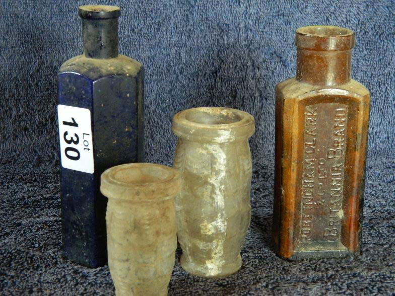 Four old bottles including Robert Ingham Clark & C