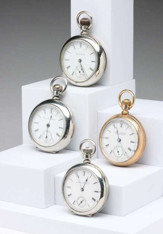 FOUR OPEN FACE COLUMBUS POCKET WATCHES.