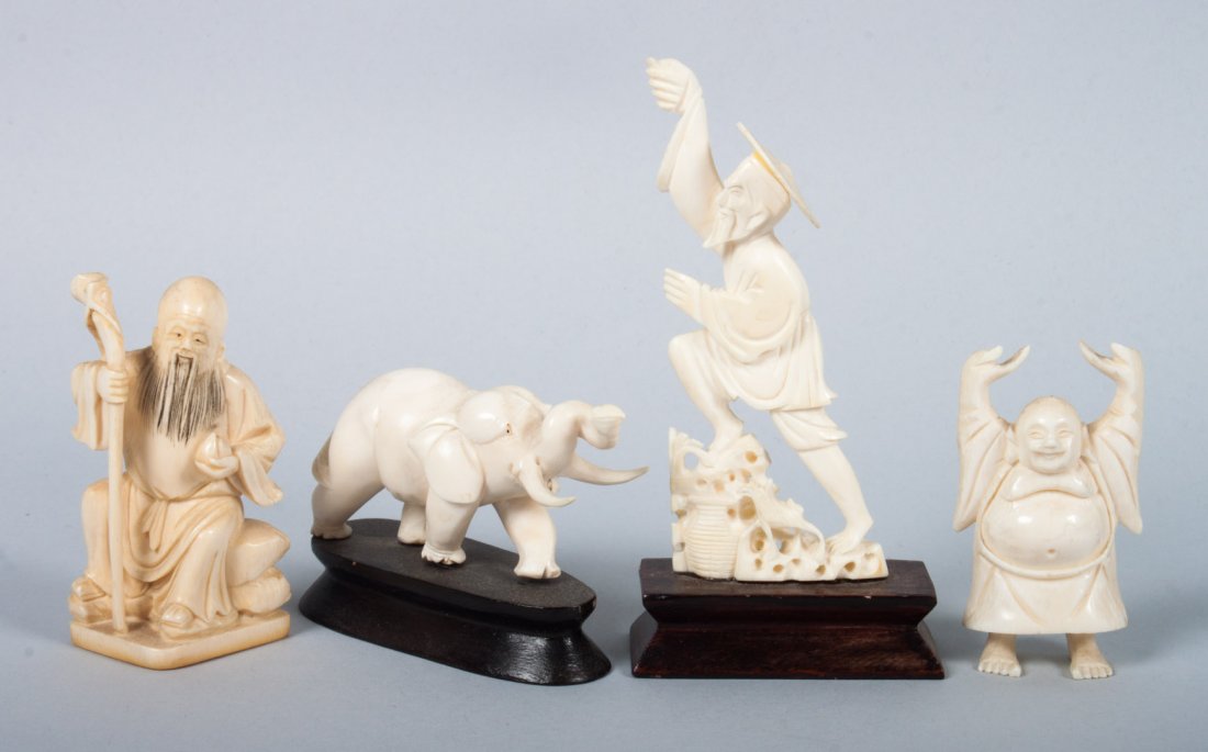Four oriental carved ivory figures