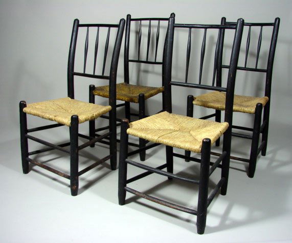 Four Painted Rush Seat Chairs