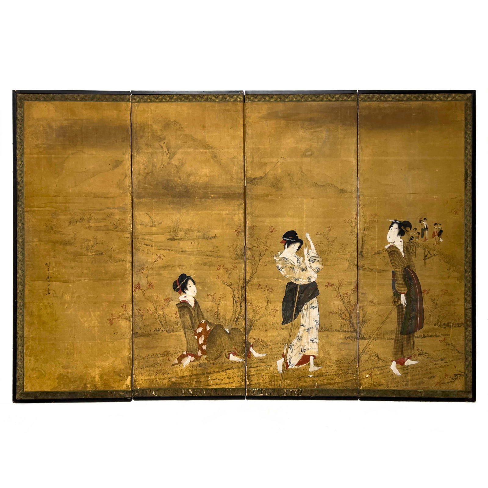 Sake Brewery, Heisei Era Japanese Yamato-E Byobu Screen1970-1980s ShÅwa Era Japanese Silk Byobu Screen "The Tale of Genji"A six-panel Chinese landscape screenMar 23, 20264 Panel Table Screen Japanese Daimyo PortraitsMar 15, 2026Meiji Era XL Japanese Yamato-E Style 6-Panel Byobu Screen "Chinese Palace Courtyard"A FIGURE AND NARRATIVE FOUR-PANEL SCREEN (SET) ON SILK BY TANG YIN.唐寅Mar 14, 2026After Hokusai "View of Gathering Shellfish at Low Tie", ShÅwa Era Japanese Byobu ScreenA set of four Chinese 'court lady' paintings on silk, Qing dynastyMar 23, 20265PC ORIENTAL LACQUER SCREEN, MAITLAND SMITH5 days LeftA pair of Chinese paintings of court ladies, attributed to Tang Yin (1470-1524)Mar 23, 2026ATTRIBUITO A KANO YASUNOBU 1613-1685 Chinese-style landscapes Edo period164 Lots Away4-Panel Folding Screen – “Mountain Village Landscape – Nihonga with Gold LeafMar 11, 2026Japanese Gold Leaf Six-Panel ScreenMar 15, 2026Utagawa Kunisada Toyokuni III (1786-1864) Woodblock PrintsMar 28, 2026A FIGURE AND NARRATIVE FOUR-PANEL SCREEN (SET) ON SILK BY EMPEROR HUIZONG OF THE SONGMar 14, 2026A Japanese Six-Panel Screen of Scenes from the TMar 25, 2026