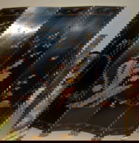 Four Panel Oriental Lacquered Screen
