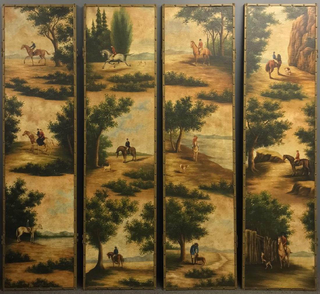 Four Panel Screen With Equestrian Scenes