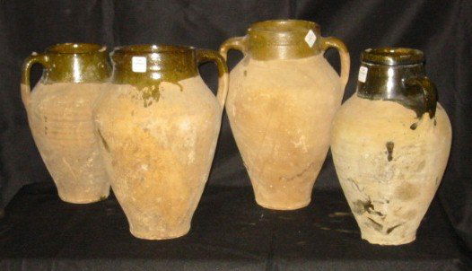 Four partial glazed pottery olive jars. 14