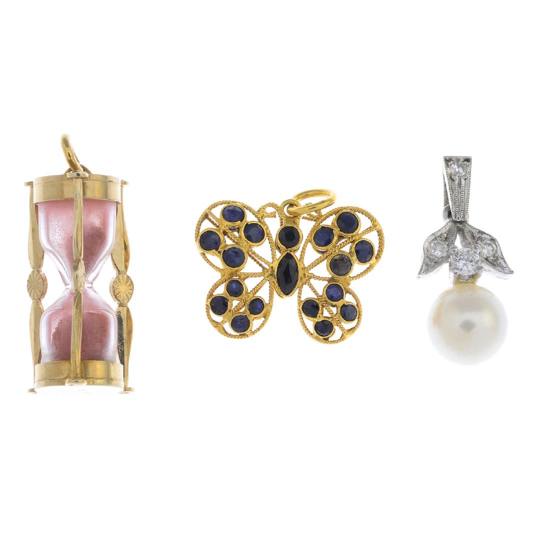 Four pendants and a gem-set stick pin. To include two