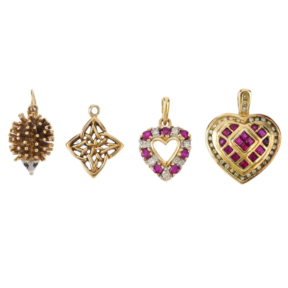 Four pendants. To include a hedgehog pendant with