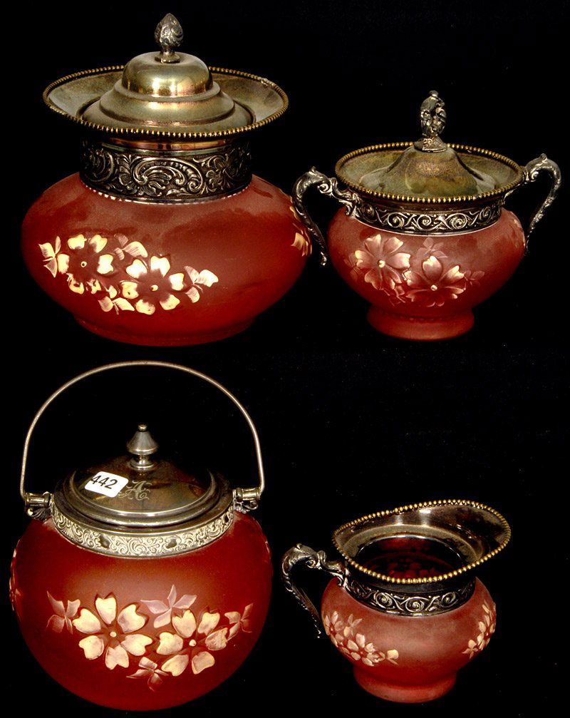FOUR PIECE RED SATIN COREOPSIS PATTERN ITEMS