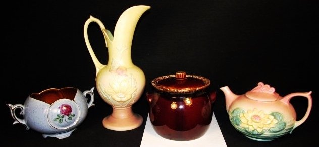 FOUR PIECES ASSORTED POTTERY: HULL, MCCOY, ETC.