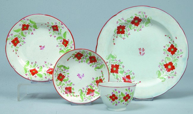 Four Pieces Soft Paste Tableware; Scalloped red ri