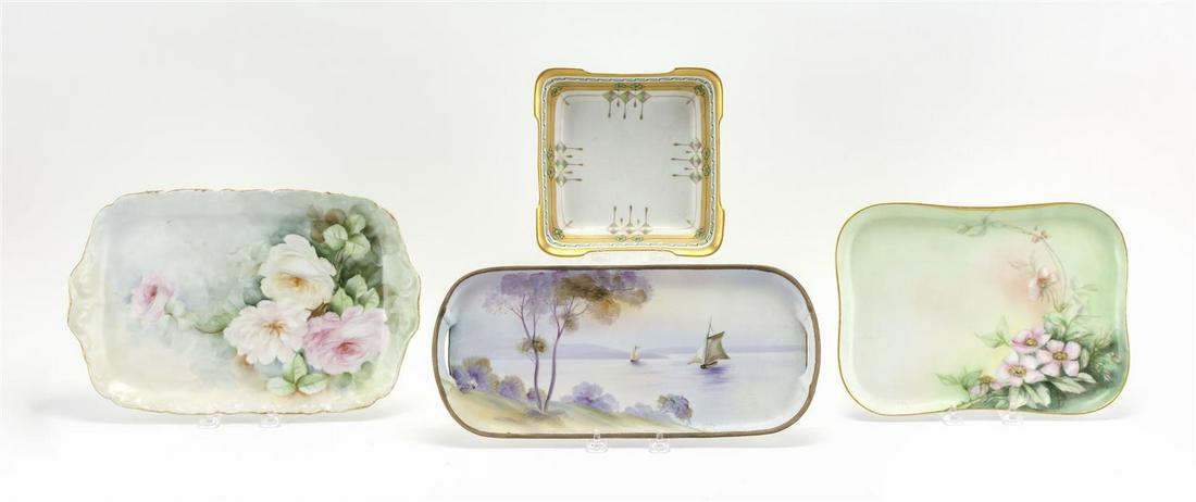 FOUR PORCELAIN SERVING DISHES A Pickard square dish,