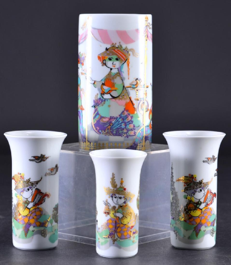 Sold(2) Pcs Rosenthal Bjorn Wiinblad Porcelain(2) Pcs Rosenthal porcelain, Studio Linie by Bjorn Wiinblad, c/o Quatre Couleurs jar (4-1/4" h x 5" dia), Commedia Dell'Arte vase (8-1/8" h)See Sold Price