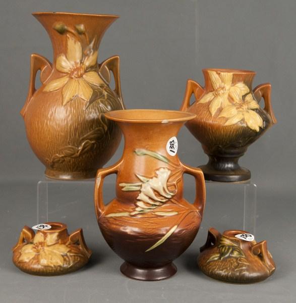 Lot of 4 Pottery Pieces, Pitchers & Bowls21 hrs LeftLot of 6 Redware Pottery Vessels21 hrs LeftLot of (4) Roseville Art Pottery VasesMar 15, 2026Four Roseville Pottery "Pinecone" VasesMar 14, 20263 Pieces Roseville Pottery #915 and #130Mar 05, 2026Roseville Weller Vintage Art Pottery Vases BowlsMar 01, 2026Roseville Bushberry Vase #156 and Rosecraft VaseMar 05, 2026Roseville Lonhuda Vintage Pottery VasesMar 01, 2026Rookwood Roseville Rozane Vintage Pottery Standard Glaze VasesMar 01, 2026Two Roseville and RRP Vintage Art Pottery PitchersMar 01, 20268 Vintage Art Pottery Pieces Including Red Wing and Roseville3pc Charles Todd for Rookwood Pottery VasesVINTAGE CERAMIC GROUPING 1970S4 days LeftRoseville Early Ware 1910-16 Vintage Art Pottery PitchersMar 01, 2026Weller Rosemont Cameo Vintage Art Pottery Color Ceramic VasesMar 01, 2026Roseville Early Ware 1910-16 Vintage Art Pottery Pitchers BowlMar 01, 2026