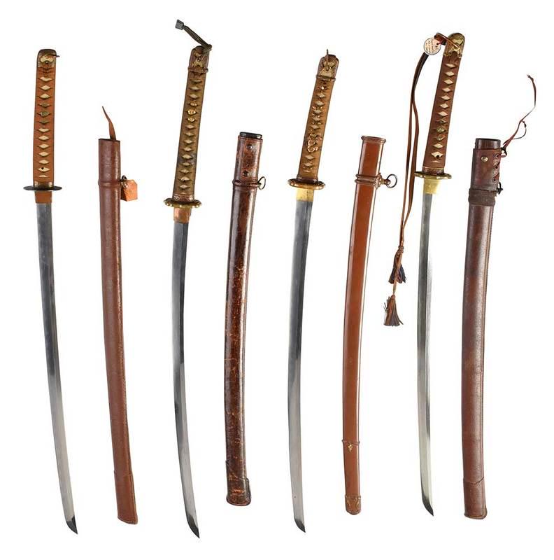 Edo Period Signed Samurai Sword in Full Tachi Mounts SignedMar 28, 2026Japanese WWII Officer's Type 98 Shin Gunto with Long SignatureApr 12, 2026Important mid 17th century Samurai TACHI Signed Shinano Daijo Fujiwara TadakuniMar 28, 2026Very Fine 18th Ce Edo Period Signed Samurai Sword in WWII Japanese Naval MountsApr 12, 2026Masterful Mid Edo Japanese WAKIZASHI SWORD Shirasaya & Sagami no Kami SignatureMar 28, 2026Sukesada,Late Muromachi, Japanese Katana SwordMar 31, 2026Kaifusumi Yoshikuni, Shinto,Japanese WakizashiMar 31, 2026Excellent Late Edo Japanese WAKIZASHI SHIKOMIZUE Cane Lacquered Bamboo Concealment FurnitureMar 28, 2026A Japanese Satsuma-Style Wakizashi Sword in a Red LMar 25, 2026Mumei,Late Muromachi ,Japanese Mino SwordMar 31, 2026Original Japanese Katana With Scabbard - 24 Inch BladeSturdy Suriage Grooved Koto Wakizashi in Original PolishMar 28, 2026Japanese WWII Pilot Wakizashi with Samurai EDO Blade Gunto Leather CoveredApr 12, 2026Japanese WWII Army Type 98 Shin Gunto Officers Sword with Signed Samurai BladeApr 12, 2026Rare Japanese Late War Type 95 Shin Gunto NCO Sword Matching Number ScabbardApr 12, 2026A LOT OF FOUR EUROPEAN COURTSWORDS (SMALLSWORDS), 18TH–EARLY 19TH CENTURY6 days Left