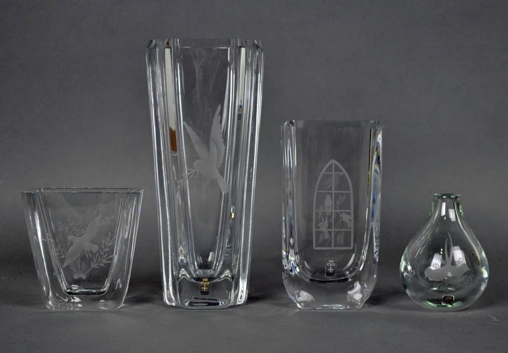 FOUR SIGNED ETCHED BIRD SWEDISH VASES