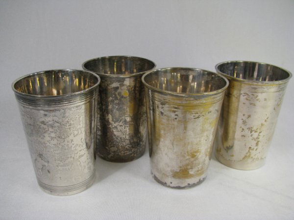 FOUR SILVER PLATE MINT JULEP GLASSES