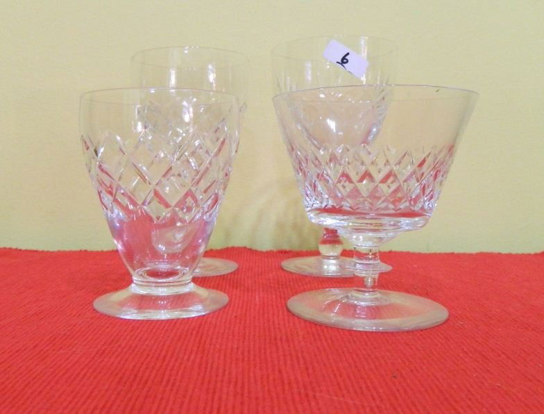 Four small crystal glasses various patterns and shap