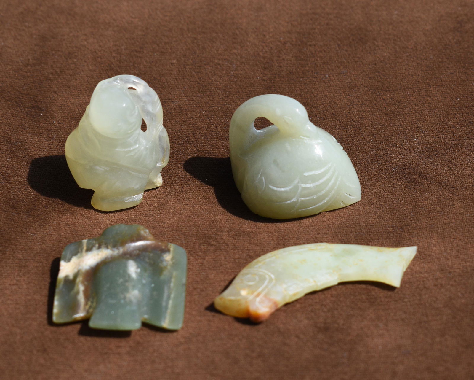 FOUR SMALL JADE FIGURES.