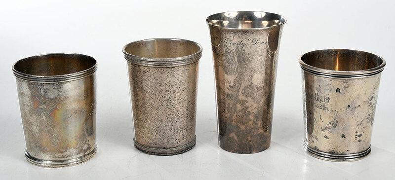 A composed lot of four religious silver and silver-plated brass church objects5 days LeftAntique White Star Liner Estate Lot Silver Plate Jug, Silver Topped Vases & Silver Topped Sugar ShakMar 15, 2026Set of Six Silver Plate Most Presentational Mint Juleps, Jimmy Carter Provenance6 days LeftSet of Two Delta Air Lines Sterling Mint Juleps, Jimmy Carter Provenance6 days LeftFlower Pot Cordial or Shot Cups - Set of 2(2) Large antique English sterling trophies10 hrs LeftSterling Silver Julep Cup by Preisner 4 Inch Tall 4.5 Troy Ounce4 days LeftSet of Six Fisher Sterling Mint Juleps6 days LeftSet of Six Scearce Jimmy Carter Sterling Mint Juleps, Jimmy Carter Provenance6 days LeftChinese silversmith. Two small goblets richly decorated in relief with flowers and ornaments.(2) English silver Rangoon sports trophies10 hrs Left4 Sterling Repousse Table Articles including KirkFeb 26, 2026Four silver plated bar articlesMar 03, 20265 Sterling Silver Beakers, a Square Bowl and a PlateFeb 26, 2026Tiffany Sterling Plate, Silverplt Coffee & Sauce PotFeb 26, 2026Two Sterling Tankards, likely East Indian2 days Left