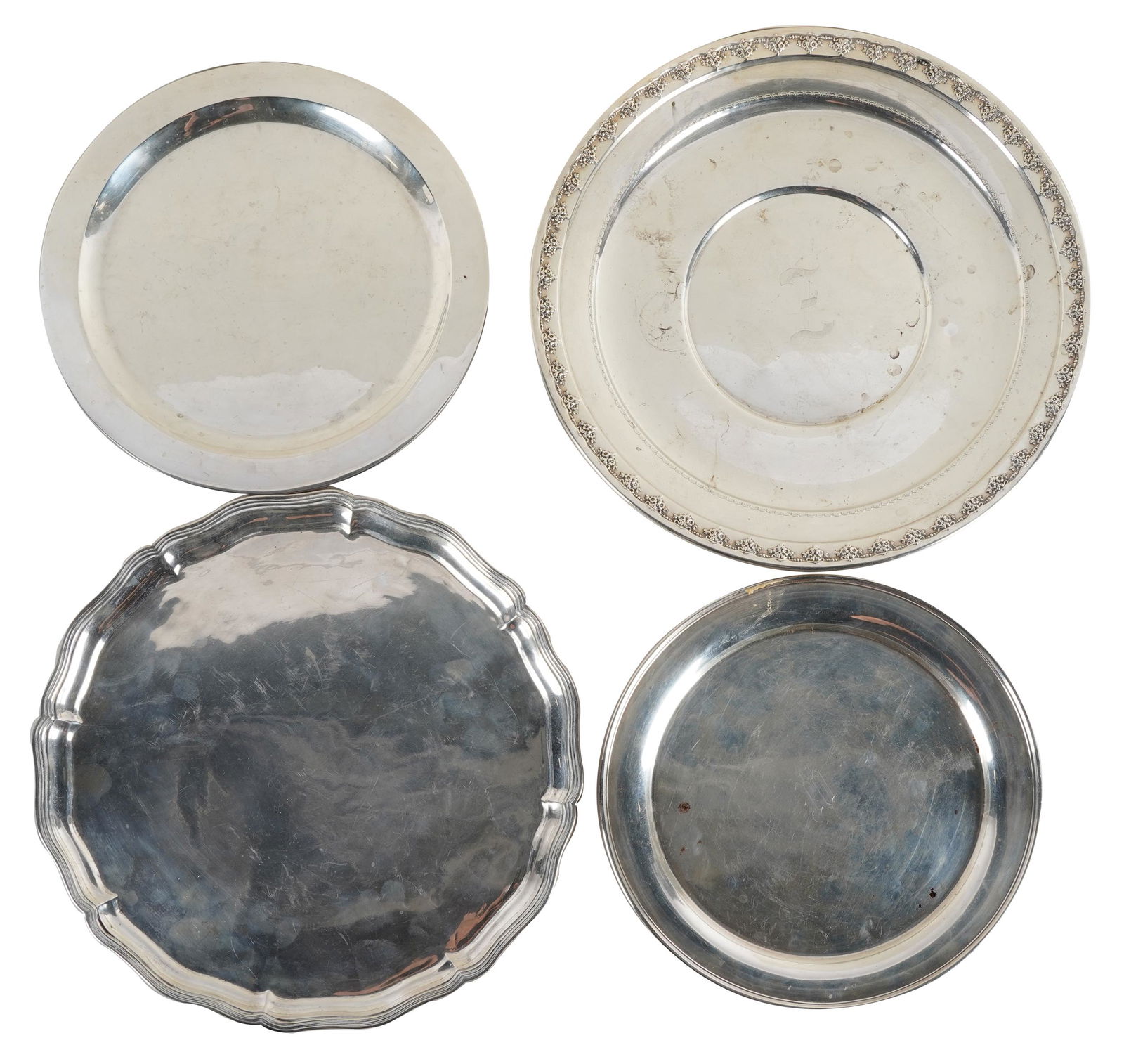 FOUR STERLING ROUND TRAYS