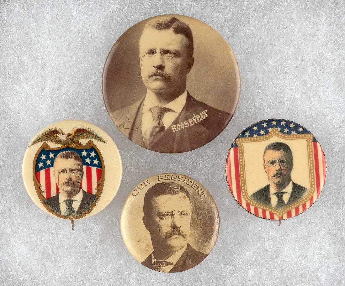 FOUR TEDDY ROOSEVELT PORTRAIT BUTTONS.