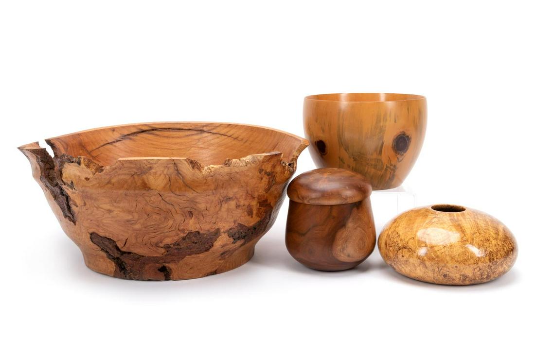 FOUR TURNED WOOD VESSELS