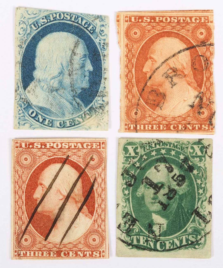 Four U.S. stamps, issue 1851-'57