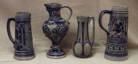 Four various German salt glazed jugs.
