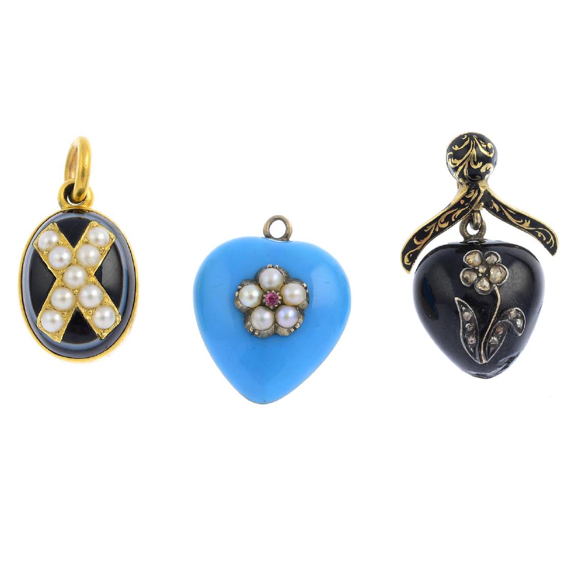 Four Victorian gem-set pendants. To include a black