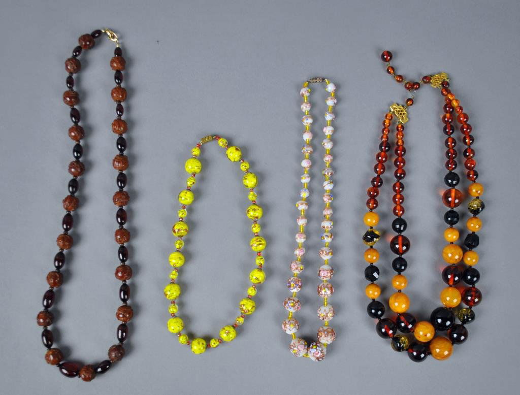 FOUR VINTAGE BEADED NECKLACES
