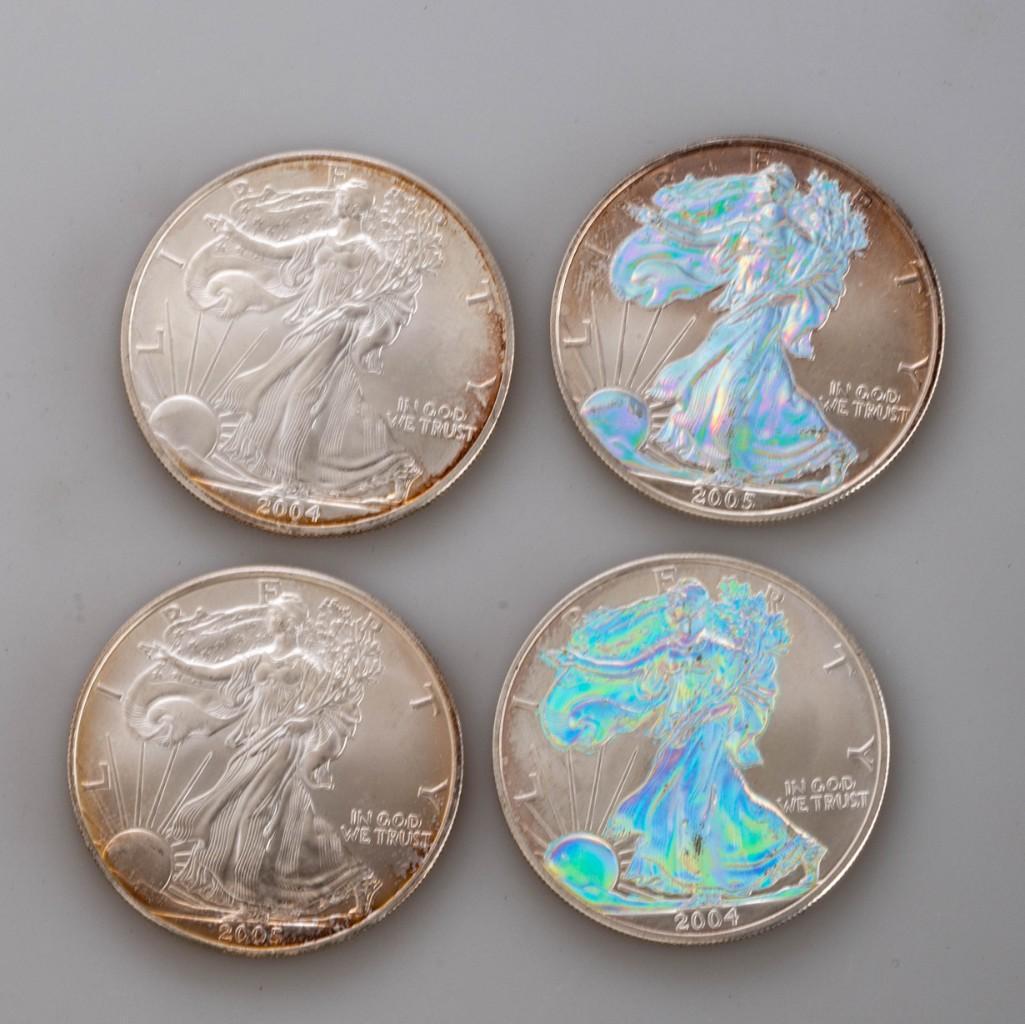 Four Walking Liberty Silver Dollars.
