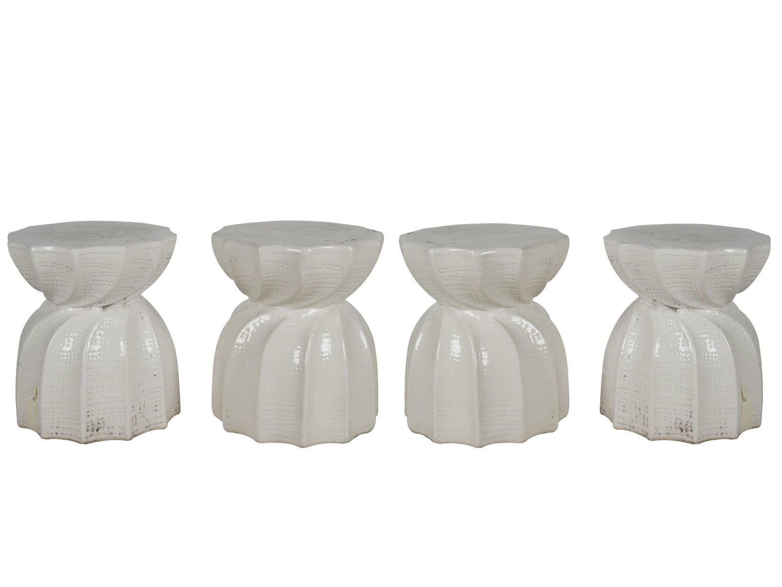 FOUR WHITE CERAMIC GARDEN SEATS