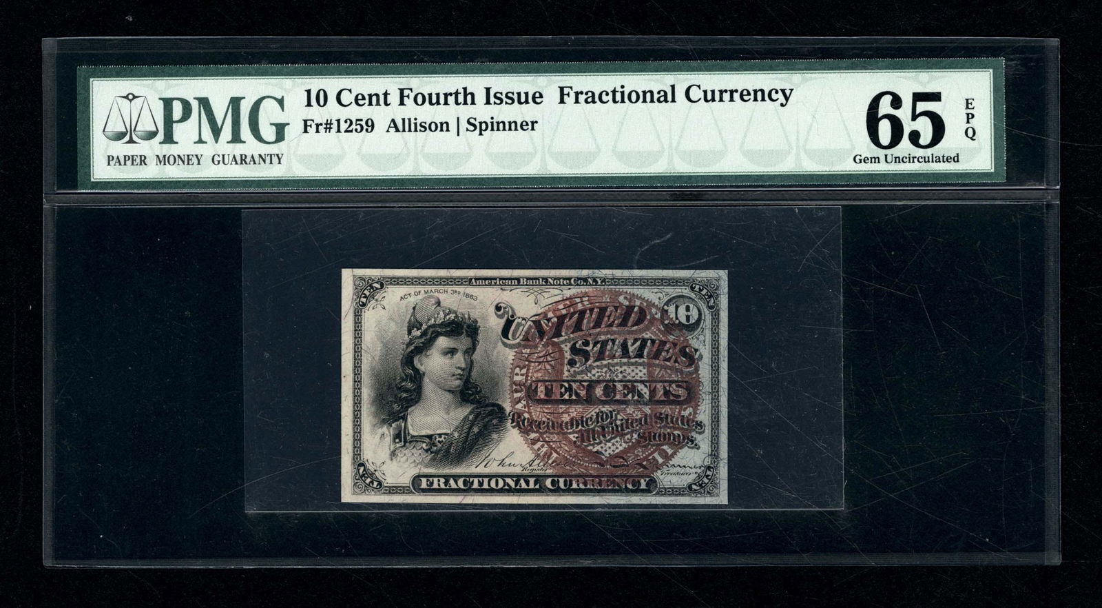 Fourth Issue 10 Cents Fractional Currency Fr# 1261 PMG Gem 65 EPQMynt Auctions4.4(831)$5206 days Left