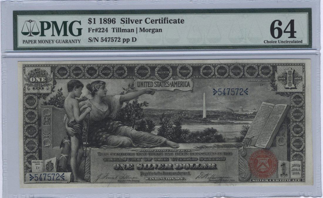 EPQ 1896 $1 Silver Certificate Educational Tillman Morgan Fr# 224 PMG GEM65Apr 03, 2026Green 1886 $2 Silver Certificate Fr# 241 PMG CH64 EPQ GCC3 days Left1880 $20 Silver Certificate - FR#310, PMG F12, Morris NoteMar 29, 2026Gold 1891 $50 Silver Certificate FR#335 PMG VF25 Choice GCC4 days LeftEducational 1896 $5 Silver Certificate FR#269 PMG VF25 GCC GreenApr 05, 2026Martha Washington $1 1886 Silver Certificate #221 PMG CH64Apr 01, 2026Educational 1896 $2 Silver Certificate FR#247 PMG XF405 days Left1896 $1 Silver Certificate, FR#224, PCGS AU50, Educational3 days LeftGreen 1923 $5 Silver Certificate Blue Seal Fr# 282 PMG VF25 GCCApr 04, 20261896 $1 Fr.224 Silver Certificate, PCGS AU50, Educational, GCC GreenMar 29, 20261896 $5 Silver Certificate (FR#268) - PMG VF205 days LeftGreen 1886 $1 Silver Certificate Martha Washington Fr# 215 PMG AU58 GCCApr 03, 20261886 $10 Silver Certificate Fr# 291 PMG VF25 Currency Collectible1 day Left1880 $10 Silver Certificate FR#288 PMG XF40 Circulated4 days Left1899 $1 Silver Certificate Star Note FR.229 Black Eagle PMG 45 Choice XFApr 01, 20261891 $10 Silver Certificate - Tombstone Fr# 301, PMG VF30, GCC GreenApr 01, 2026