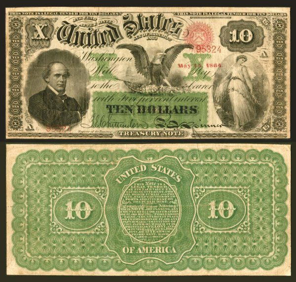 1886 $10 Treasury Note Fr. 294 PMG VF25 Tombstone