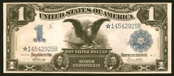 PPQ 1923 $1 Silver Certificate FR#237 PCGS Superb GEM 68Feb 26, 20261899 US $1 Black Eagle Silver CertificateMar 07, 2026Series Of 1899 United States $1 Large Size Black Eagle Silver CertificateFeb 27, 2026Series Of 1899 United States $1 Large Size Black Eagle Silver CertificateFeb 27, 2026(176B) 1899 $1 SILVER CERTIFICATE STAR NOTE FR.229* BLACK EAGLE PMG 45 CHOICE XFMar 02, 2026Gold 1899 $1 Silver Certificate FR#236 PMG CU64 PPQ GCC3 days Left1957 USA $1 Silver Certificate Z84243154A – Blue SealMar 01, 2026USA 1935E $1 Silver Certificate – Serial A70267305IMar 01, 2026Large Size - FR. 261 1886 $5 Silver Certificate PMG Choice Fine 15Mar 02, 2026(384A) 1928 A $1 SILVER CERTIFICATE FR.1601 WOODS MELLON T-A BLOCK PCGS 65 PPQ6 days Left(150B) 1899 $1 SILVER CERTIFICATE STAR NOTE FR.236* BLACK EAGLE PCGS 15 CH FINEFeb 25, 2026PPQ 1928A $1 Silver Certificate Fr# 1601 XA Block PCGS Gem667 days LeftEPQ 1928B $1 Silver Certificate Blue Seal Fr# 1602 PMG Gem65Mar 01, 2026PPQ 1928A $1 Silver Certificate Blue Woods Mellon Fr# 1601 PCGS CU 645 days LeftLarge Size - FR. 1187 1922 $20 Gold Certificate PMG Choice VF35Feb 23, 2026Fr 1604 1928D $1 Blue Seal Silver Certificate PMG Graded 67 EPQ3 days Left