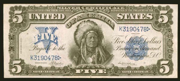 Chief 1899 $5 Silver Certificate FR#280m Mule PMG VF20 GCC GoldFeb 25, 2026PMG VF30 1899 Mule $5 Silver Certificate Fr280m Gold Chief Note1 day Left1899 US $1 Black Eagle Silver CertificateMar 07, 2026Series Of 1899 United States $5 Large Size "Chief-Running Antelope" Silver Certificate CGC Fine 15Feb 27, 2026PPQ 1923 $1 Silver Certificate FR#237 PCGS Superb GEM 68Feb 26, 2026EPQ 1934B $5 Silver Certificate FR#1652 PMG GEM 66Feb 24, 2026PPQ 1935A $1 Experimental (S) FR1610 SC PCGS Superb Gem 68Feb 24, 2026Large Size - FR. 261 1886 $5 Silver Certificate PMG Choice Fine 15Mar 02, 2026VF25 1929 Ty.1 $5 Public NB & TC of New York NY CH#11034 PMGFeb 27, 20261899 $5 Chief Silver Certificate PMG 25EPQFeb 26, 2026EPQ 1977 $5 FRN Offset Printing Error1974-B PMG CH Unc 64Feb 26, 2026Face 1934C $5 Silver Certificate FR# 1653 PCGS 67PPQ Superb Gem New Wide6 days LeftEPQ 1928C $2 Legal Tender Red Fr# 1528 PCGS Gem 66Mar 03, 2026PPQ 1928 $1 Silver Certificate Star FR 1600* PCGS Superb Gem 676 days Left1928 Series A US $1 Funnyback Blue Seal Silver CertificateMar 07, 2026VF25 1929 Ty. 1 $5 Public NB & TC NY CH#11034 PMG7 days Left