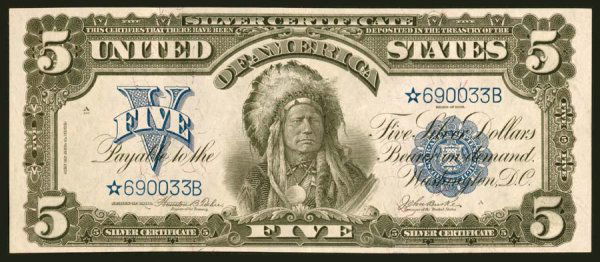 PMG VF30 1899 Mule $5 Silver Certificate Fr280m Gold Chief Note2 days LeftStar 1934D $5 Silver Cert FR#1654* PCGS 65 PPQ Gem Wide IIFeb 27, 2026Series Of 1899 United States $5 Large Size "Chief-Running Antelope" Silver Certificate CGC Fine 15Feb 27, 2026Note 1934D $5 Silver Cert FR#1654w* PMG 66 Gem EPQ Wide I Star6 days LeftStar 1963 $5 Legal Tender FR#1536* PCGS 68 PPQ Superb Gem6 days LeftSeries Of 1923 United States $1 Large Size Silver Certificate Star NoteFeb 27, 2026Chief 1899 $5 Silver Certificate FR#280m Mule PMG VF20 GCC GoldFeb 25, 20265 1928 $1 Silver Cert FR#1600 PCGS 68 Superb Gem New PPQ POP4 days Left(935*) 1914 $5 FEDERAL RESERVE STAR NOTE FR.867a* ATLANTA PCGS VF 20 VERY FINEMar 03, 2026Star 1935G $1 Silver Cert FR#1616* PCGS 67 Superb Gem PPQ N/ M5 days Left3 1928D $5 Legal Tender FR#1529 PCGS 68 Superb Gem PPQ POPFeb 23, 2026PPQ 1928 $1 Silver Certificate Star FR 1600* PCGS Superb Gem 677 days Left1863-64 50C Fractional Currency NoteFeb 26, 2026(955*) 1934 C $10 FEDERAL RESERVE STAR NOTE ST. LOUIS FR.2008-H* PCGS CU 63 PPQFeb 24, 20261957 USA $1 Silver Certificate Z84243154A – Blue SealMar 01, 2026Star 1928E $5 Legal Tender FR#1530* PMG 66 Gem UNC EPQMar 05, 2026