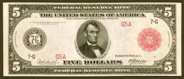 Fr. 838a $5 1914RS Chicago G5A