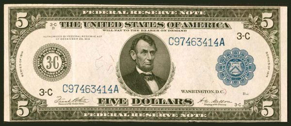 1914 $5 Philadelphia FRN PCGS 64PPQ