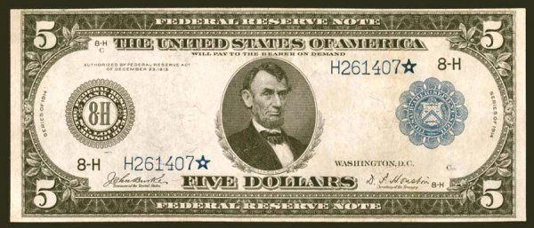 (935*) 1914 $5 FEDERAL RESERVE STAR NOTE FR.867a* ATLANTA PCGS VF 20 VERY FINESEUYCO4.5(50)$560Mar 03, 2026