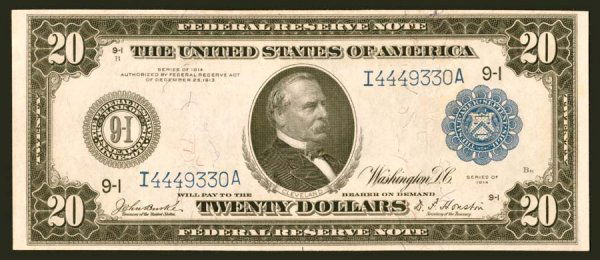 VF 1914 $20 NEW YORK FEDERAL RESERVE NOTE BLUE SEAL RAW F/Feb 27, 2026Series 1918 $1 National Currency, FRB Minneapolis7 days Left$20 FEDERAL RESERVE OF NEW YORK BROWN SEAL NOTE2 days LeftSeries Of 1929 United States $20 FNB Of Bayfield Wisconsin National Currency NoteFeb 27, 2026(035) 1929 $20 AMERICAN NATIONAL BANKNOTE CURRENCY SIDNEY NEBRASKA5 days LeftFINE 1914 $20 BOSTON FEDERAL RESERVE NOTE BLUE SEAL RAWMar 01, 2026PPQ 1963B $1 Federal Reserve Note FR#1902* PCGS Superb Gem67Mar 01, 2026Large Size - FR. 1173 1922 $10 Gold Certificate PCGS VF25Mar 04, 20261934B $20 Minneapolis FRN PMG 65EPQ7 days LeftFR#2305 1934A $20 Hawaii WW2 PCGS 67 SUPERB GEM PPQFeb 19, 202665 Binded Consecutive Number 2003 $1 United States Federal Reserve NotesFeb 27, 2026Series Of 1929 United States $20 Federal Reserve Bank Of New York National Currency NoteFeb 27, 2026Green 1914 $20 FRN Philadelphia PA Fr# 975 PMG VF20 GCCMar 05, 2026PPQ 1923 $1 Silver Certificate FR#237 PCGS Superb GEM 687 days LeftUnited States $2 Legal Tender Note 1953 Series A68803268A3 days LeftGreen 1914 $20 FRN Philadelphia Fr# 975 PMG VF25 GCC330 Lots Away