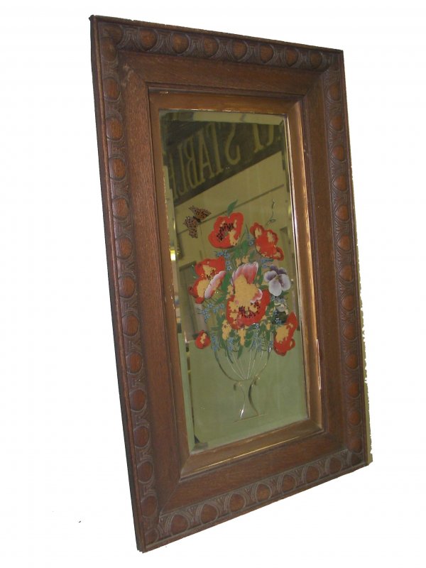Framed 19th C. Reverse Painted Flowers On Mirror