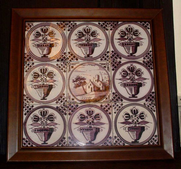 FRAMED 9 TILE WALL PC OLD BROWN TILES 10802N